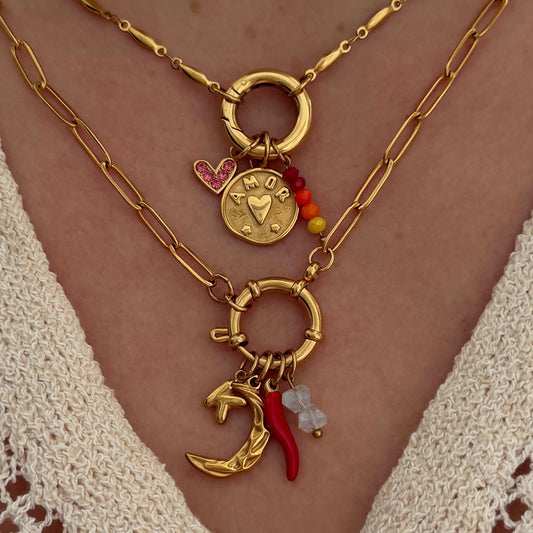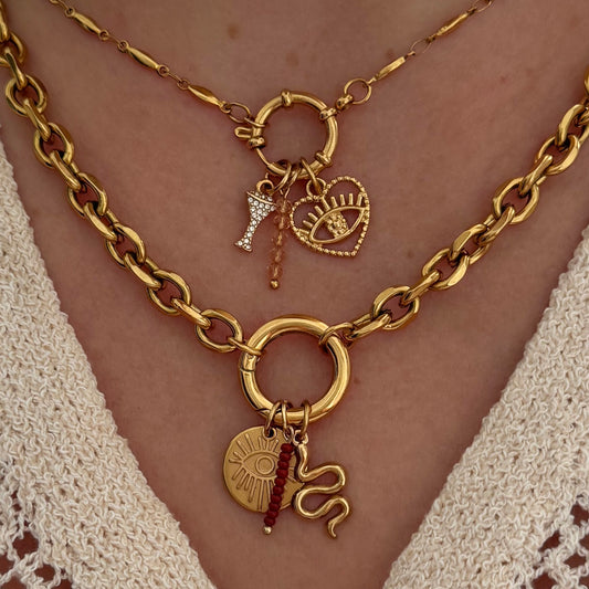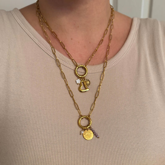 Gold Statement Rolo Round Charm Necklace