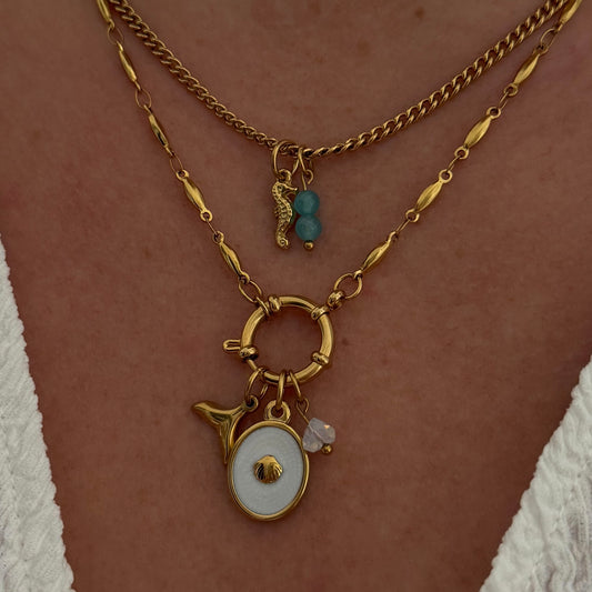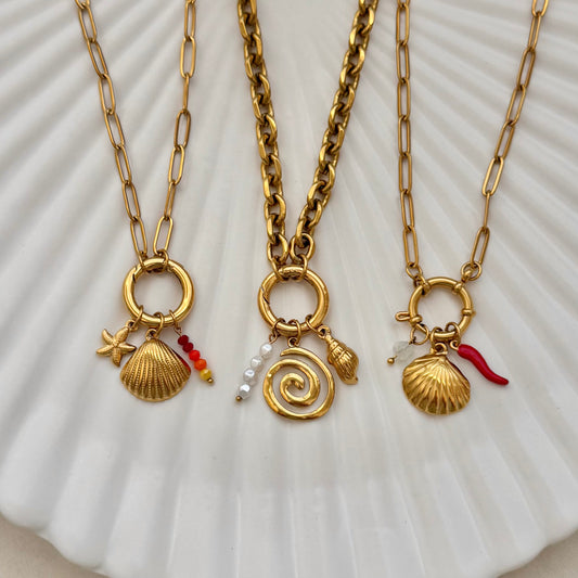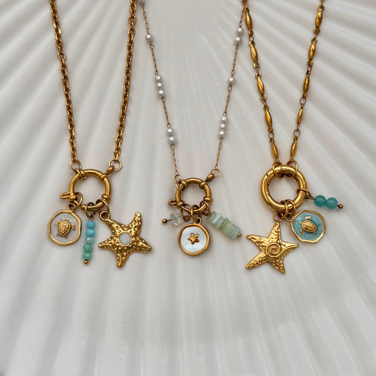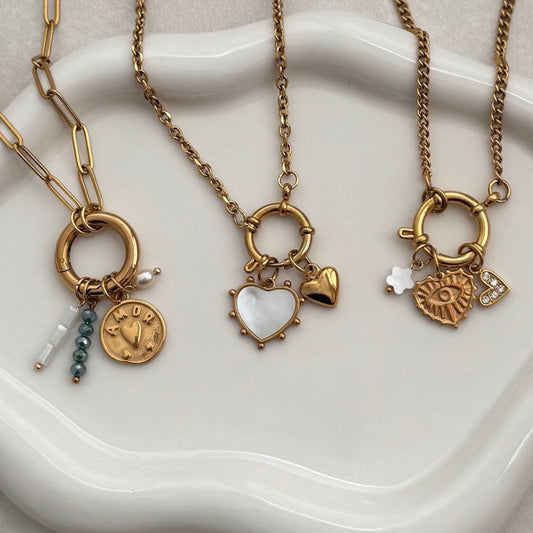 We recommend 2-3 charms on plain charm necklaces, or 3-4 charms onto clasp necklaces