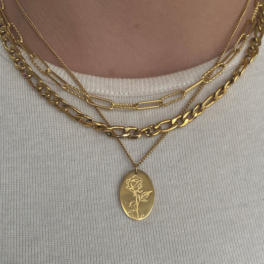 Engraved Rose Pendant Necklace