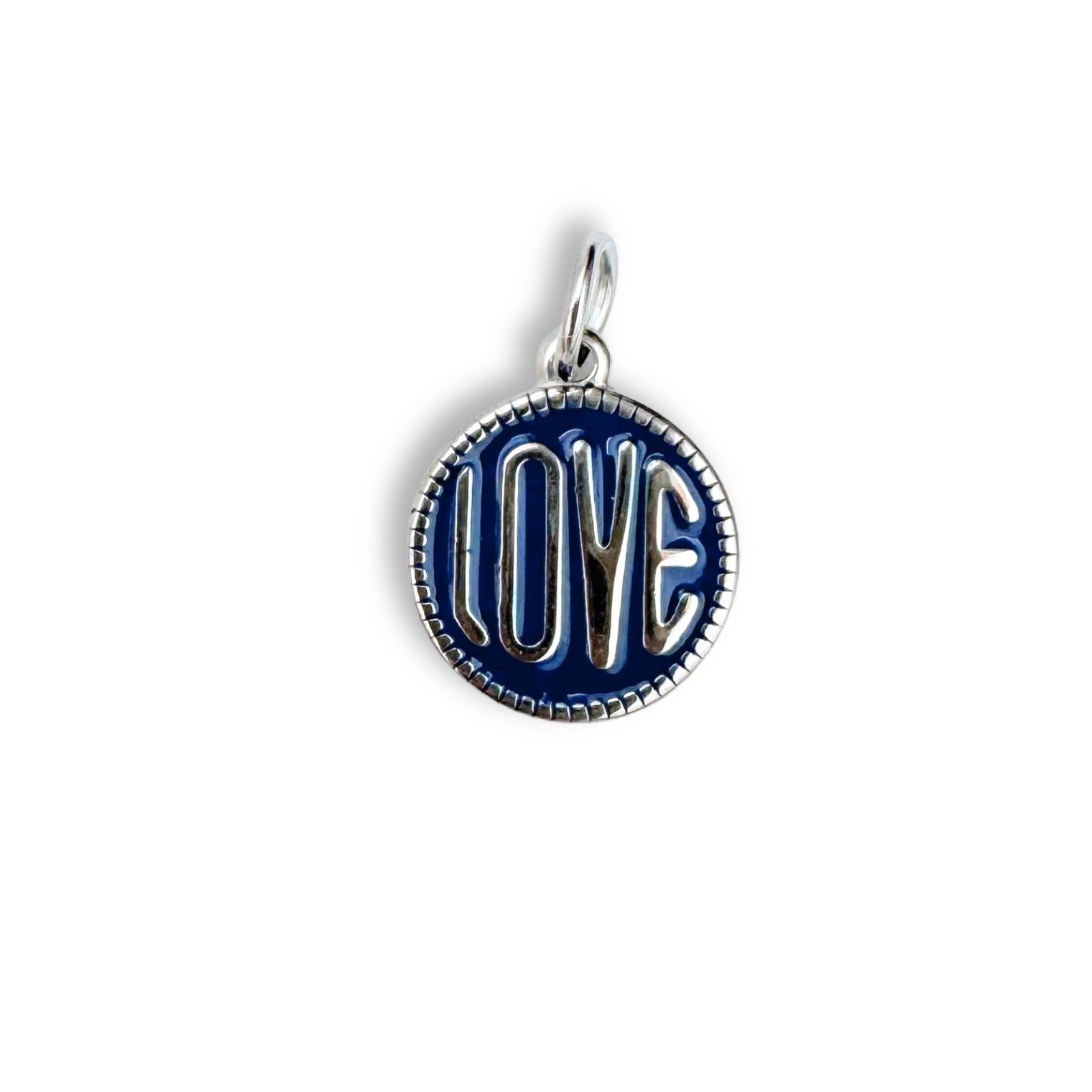 Blue Love Coin Charm - Silver